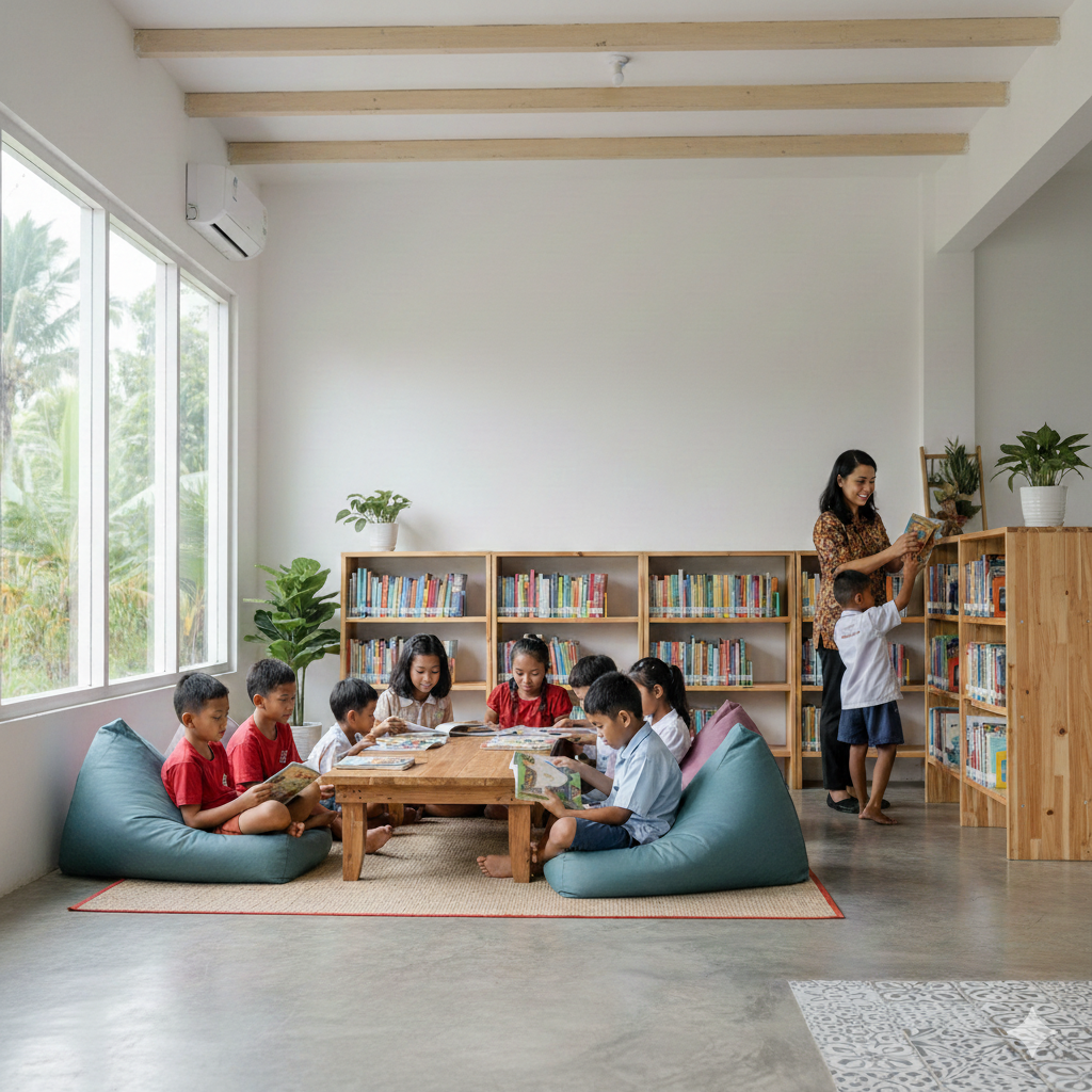 Koleksi terbaru yang baru saja ditambahkan ke perpustakaan desa.